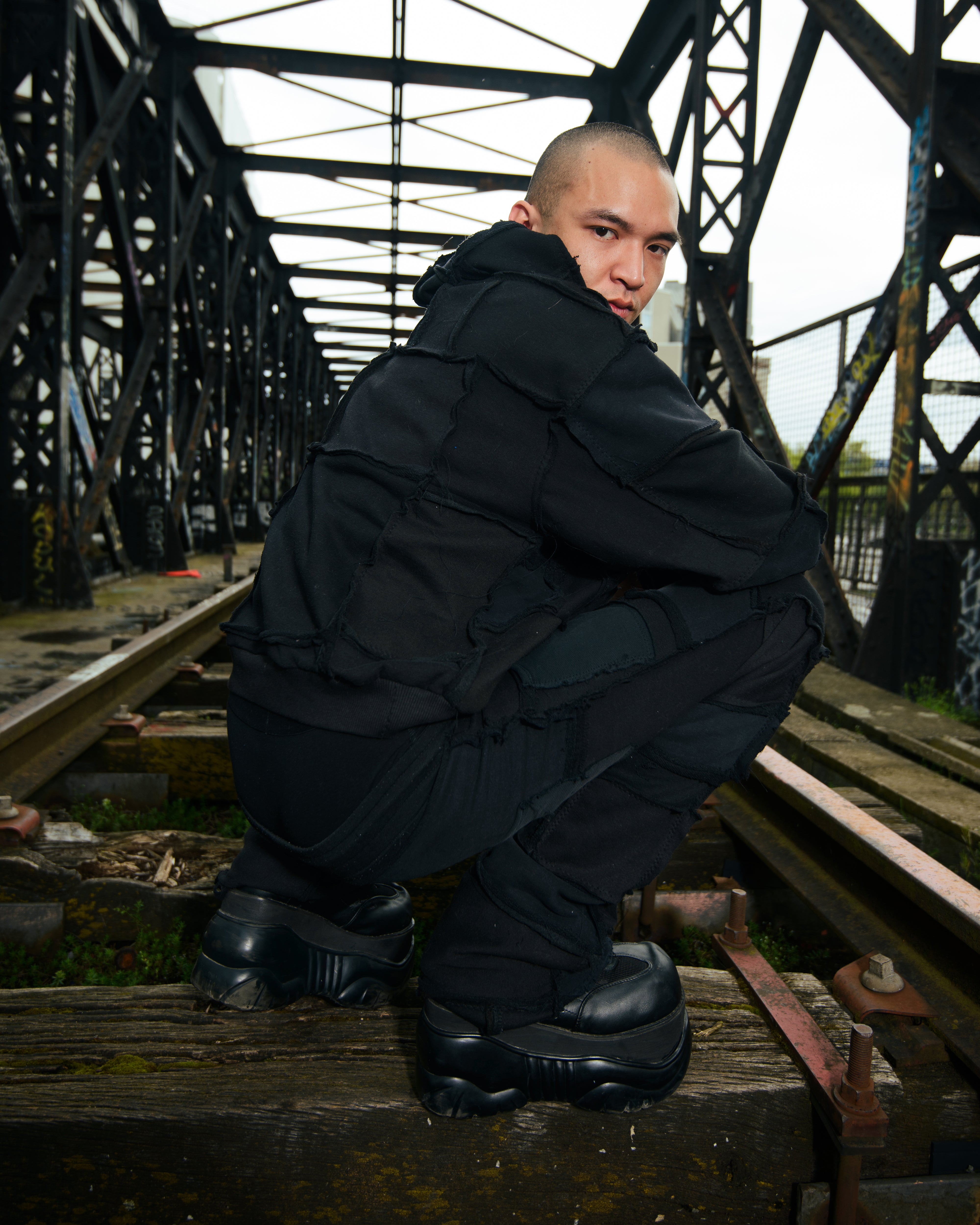 [HOODIE] COTTONFLEECE PATCHWORK BLACK